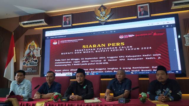 Berdasarkan Hasil Rapat Pleno Tertutup, KPU Kabupaten Kediri dalam siaran pers-nya menetapkan pasangan calon Bupati dan Wakil Bupati Kediri Tahun 2024. Bahwa Pada Minggu, 22 September 2024. Anggota KPU Kabupaten Kediri telah melaksanakan rapat pleno tertutup di Kantor KPU Kabupaten Kediri, Jl. Pamenang No. 1 Kediri pada pukul 10.00 WIB.